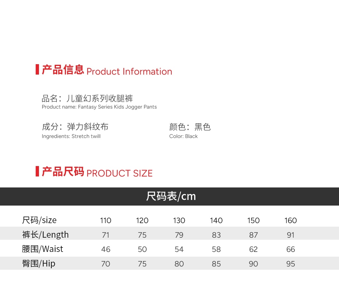 Size 110 or 120 or 130 or 140 or 150 or 160