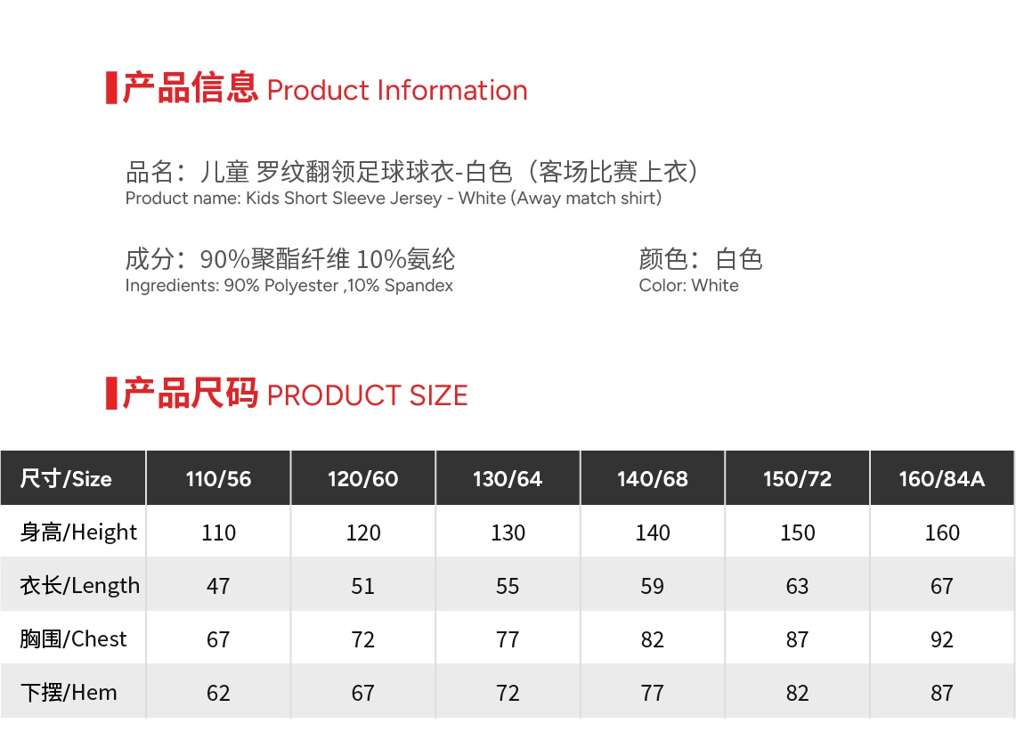Kids Short Sleeve Jersey - White (Away match shirt)