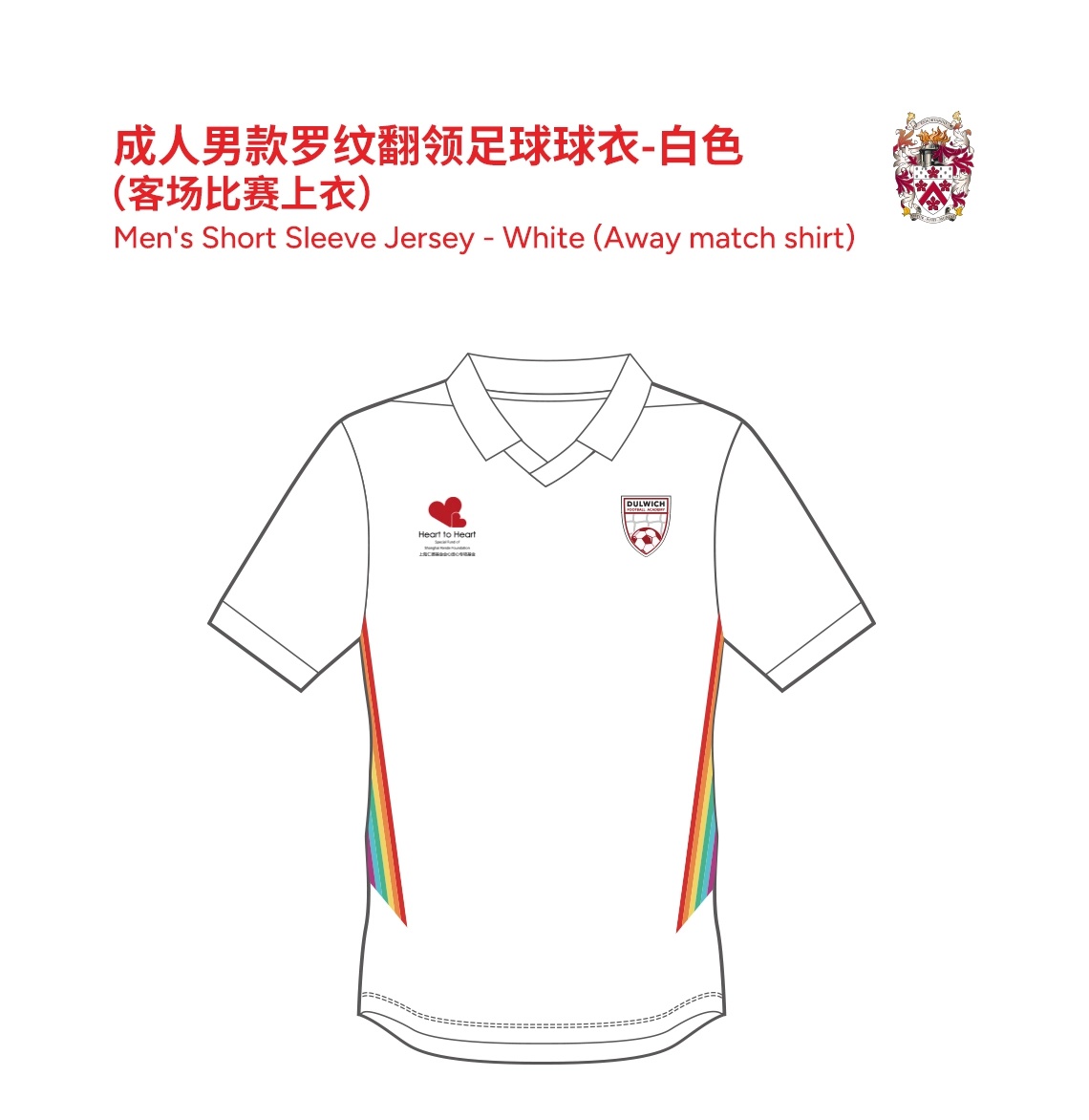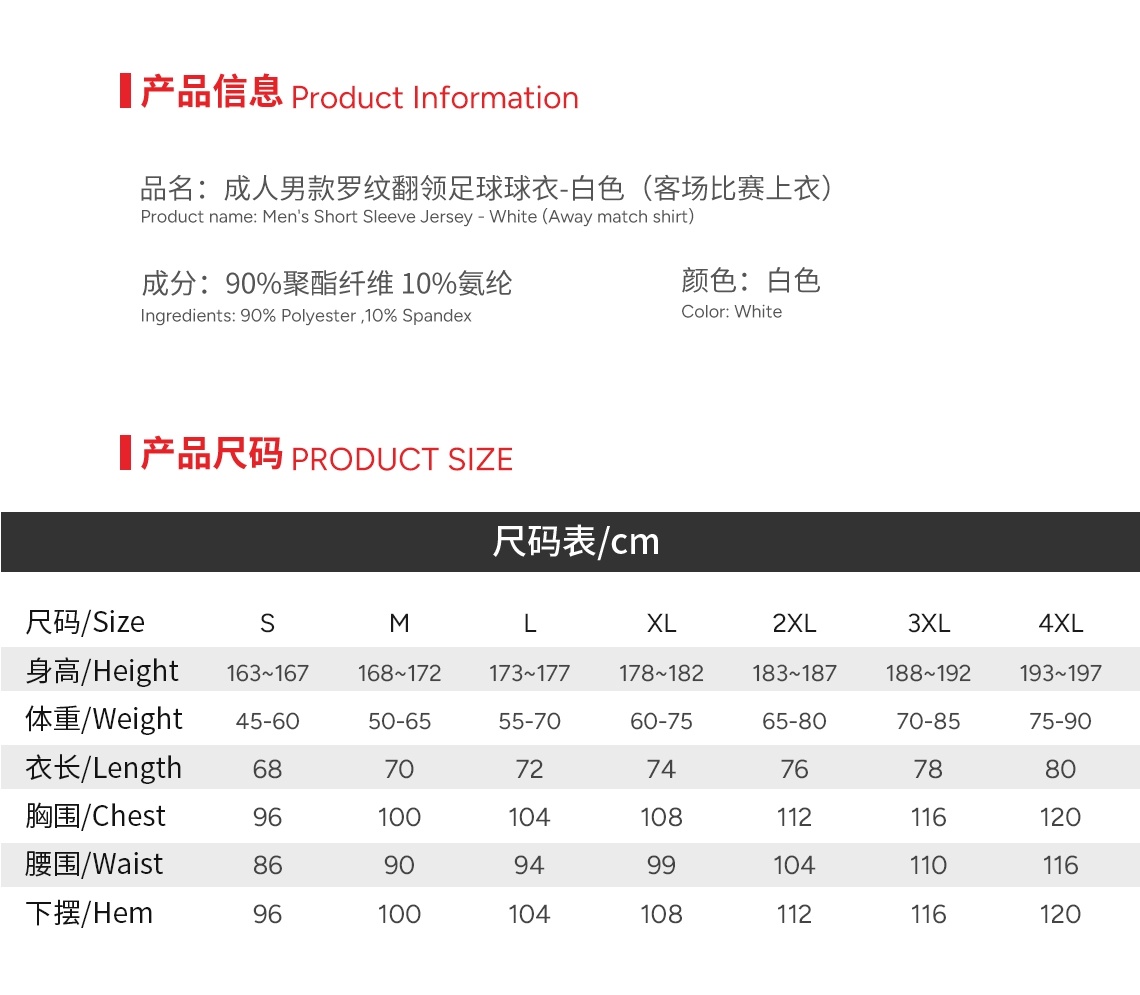 成人男款罗纹翻领足球球衣-白色(客场比赛上衣)