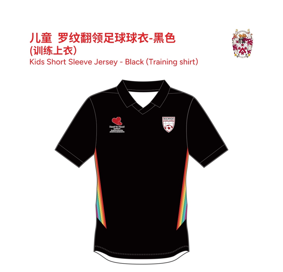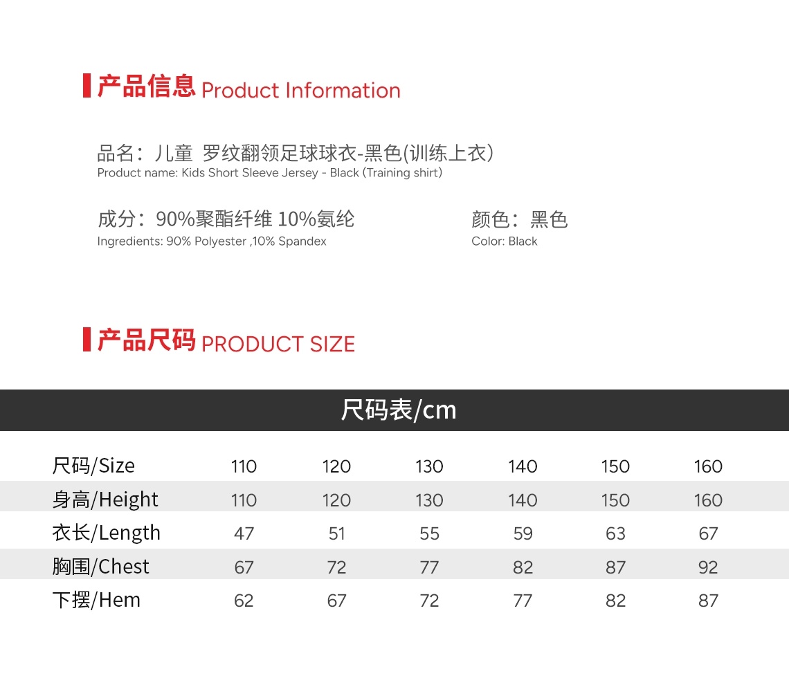 儿童 罗纹翻领足球球衣-黑色(训练上衣)