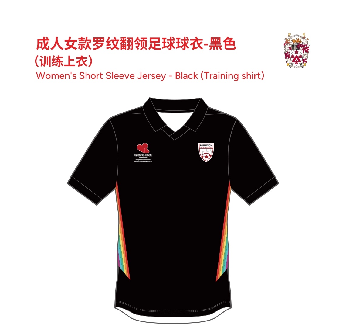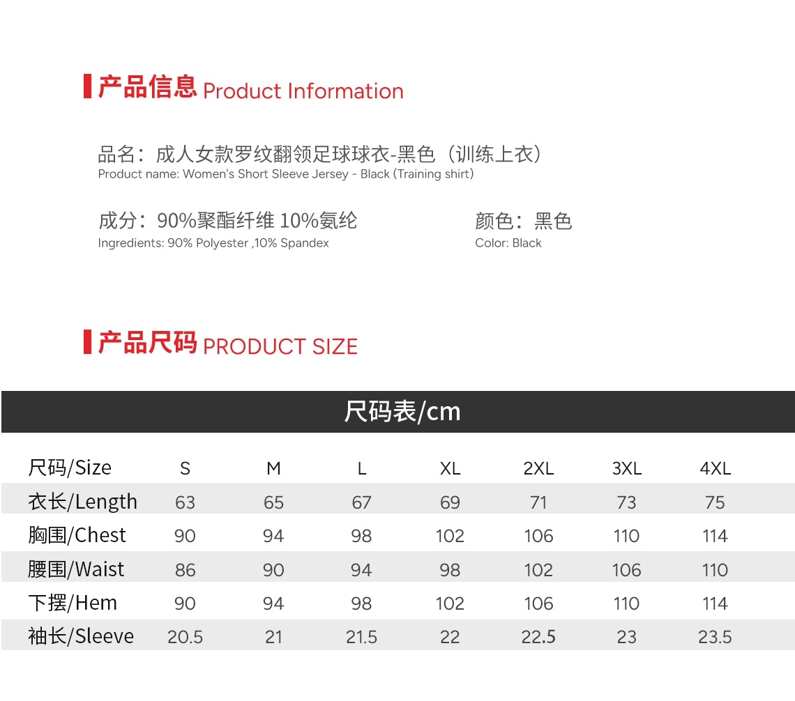 成人女款罗纹翻领足球球衣-黑色(训练上衣)
